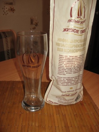 Этот бокал куплен в 2009 году в московском ресторане-пивоварне "Пятый океан". Он расположен на Марксистской улице, недалеко от метро Таганская. Оригинальный океанский интерьер двух залов ресторана-пивоварни подчеркнут флотской основательностью и лаконичностью: светлые стены, массивная эксклюзивная мебель мореного дерева, потолочные балки с яхтенными светильниками. На стенах знаменитые бекеновские постеры океанских яхт конца 19-го и начала 20-го века.
